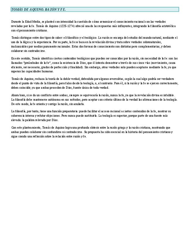 Apuntes de Santo Tomás de Aquino para la preparación de los Exámenes de Acceso a la Universidad. Bien resumidos y esquematizados, con todos los contenidos necesarios para superar la asignatura de Hª de la Filosofía y su examen en la PAU