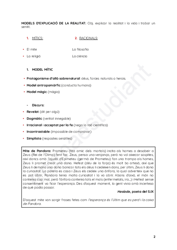 Apuntes de filosofia de 1º de bachillerato, donde se explica la teoria del saber. Estan en catalán.