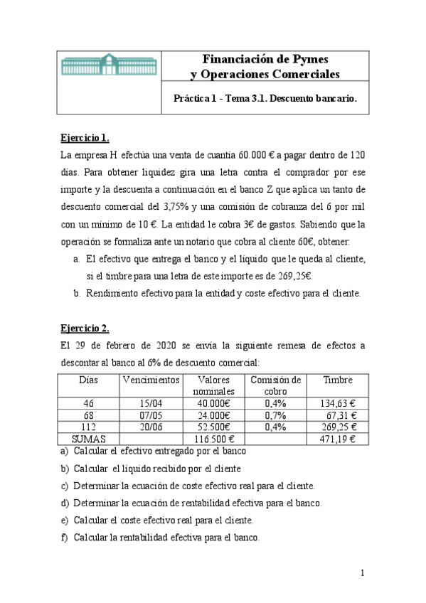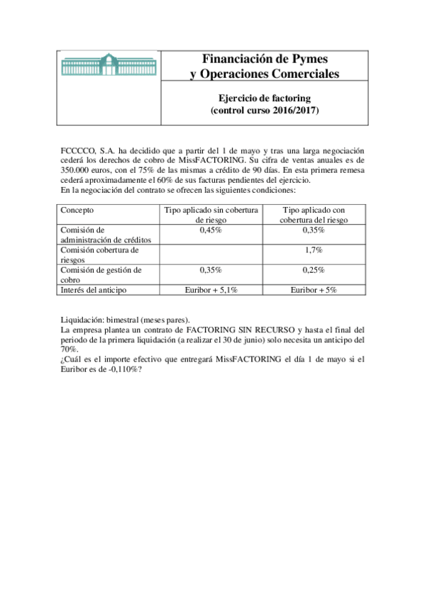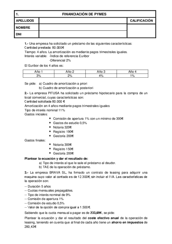 He publicado nuevos examenes de 2º Financiación de PYMES y operaciones comerciales: Prueba Examen 1ª Parte resuelta.pdf