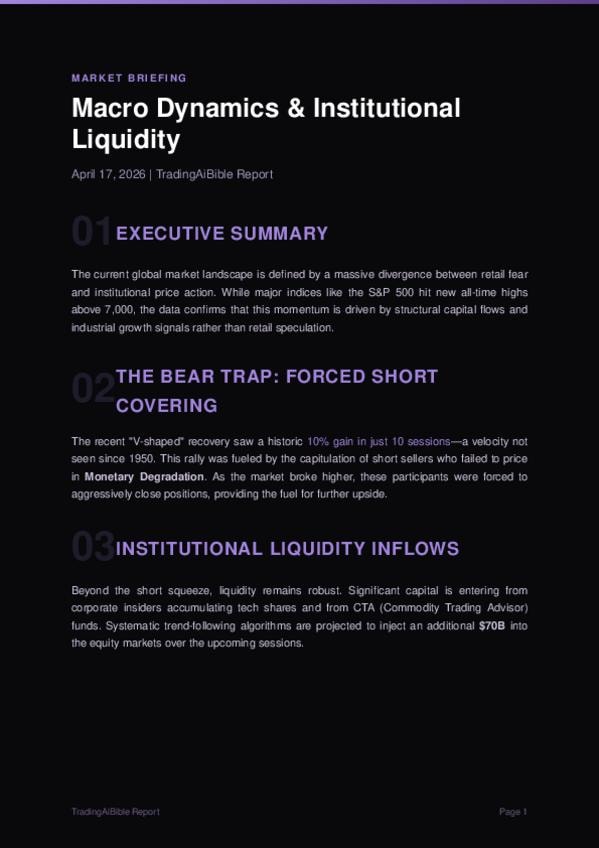 The April 17, 2026 Macro Report shows a huge divergence between retail fear (43.2% bearish) and institutional buying. Driven by a historic short squeeze and $70B in CTA inflows, the S&P 500 hit record highs. Meanwhile, a breakout in Copper signals acceler