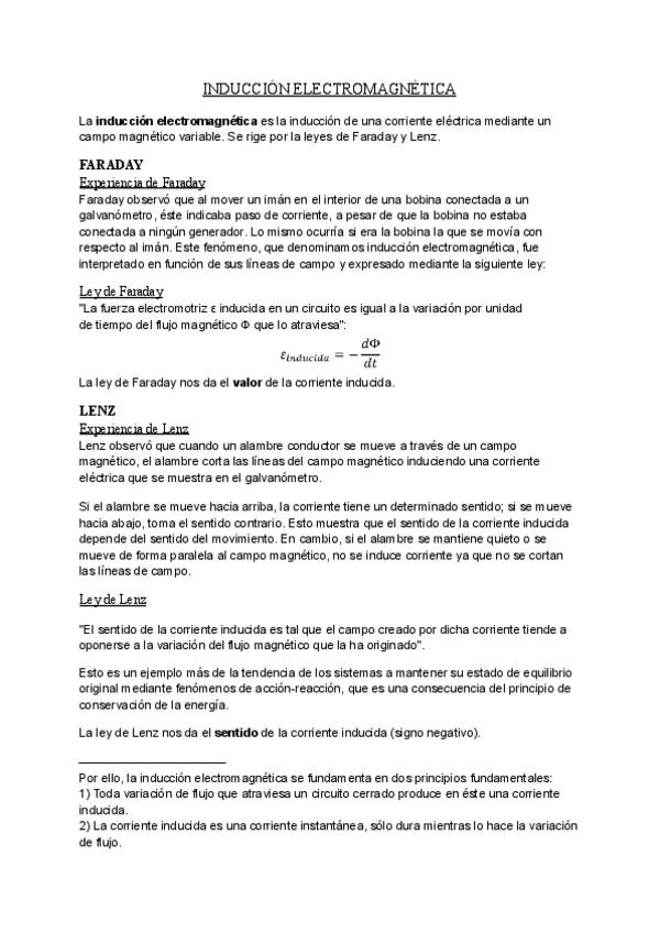 Apuntes teóricos de las leyes de Faraday y Lenz sobre el tema de inducción electromagnética