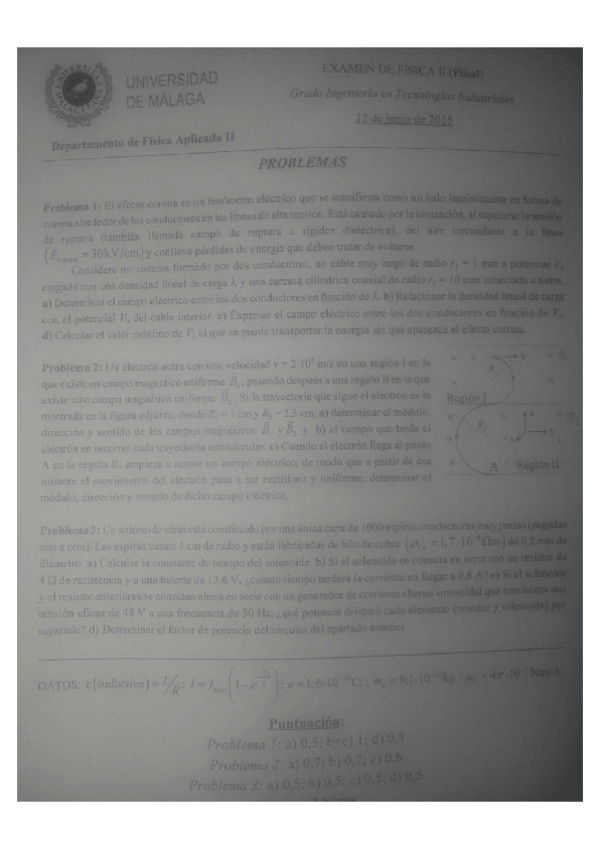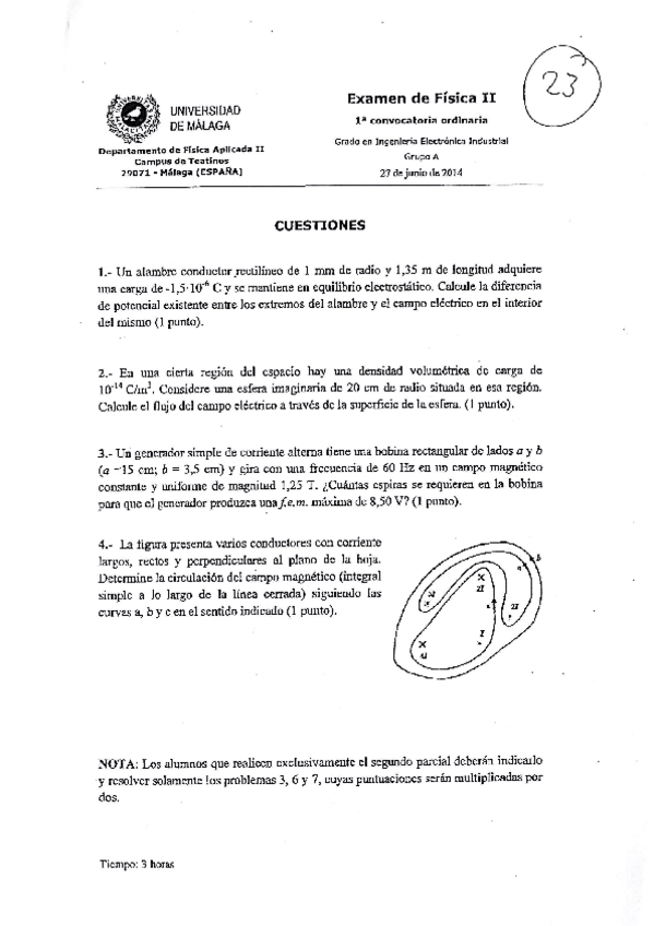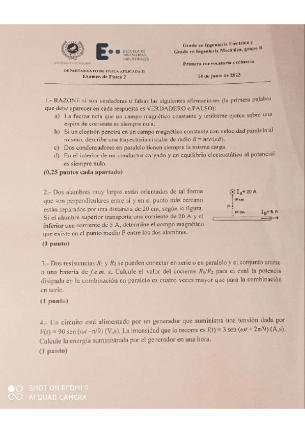 Examen Física 2 Final Junio 2023 Eléctrica