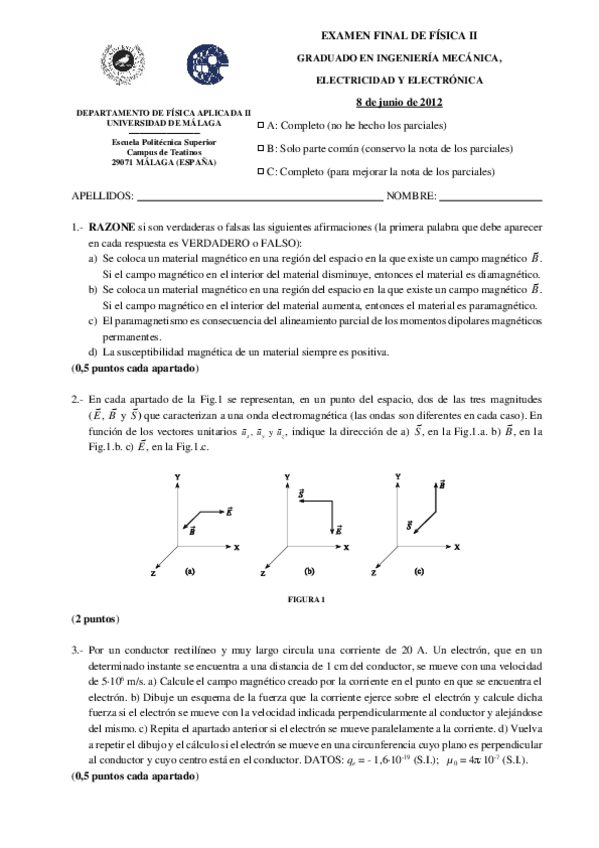 He publicado nuevos examenes de 1º Física 2: EXÁMENES RESUELTOS
