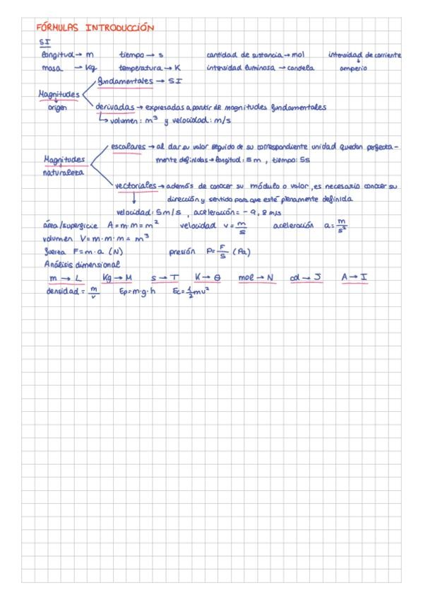 Resumen de las fórmulas del primer parcial. Temas: Análisis dimensional, Vectores y Cinemática
