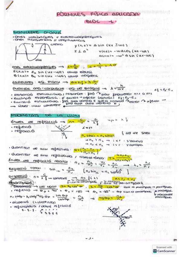Formulari complet pel final/recuperació de Física aplicada a Farmàcia