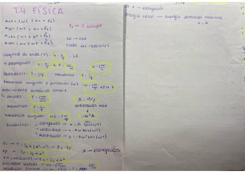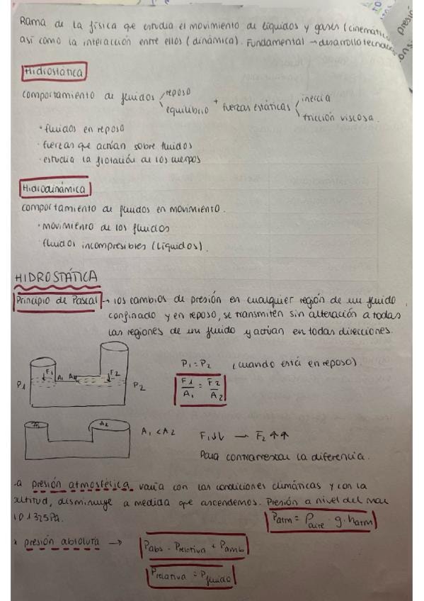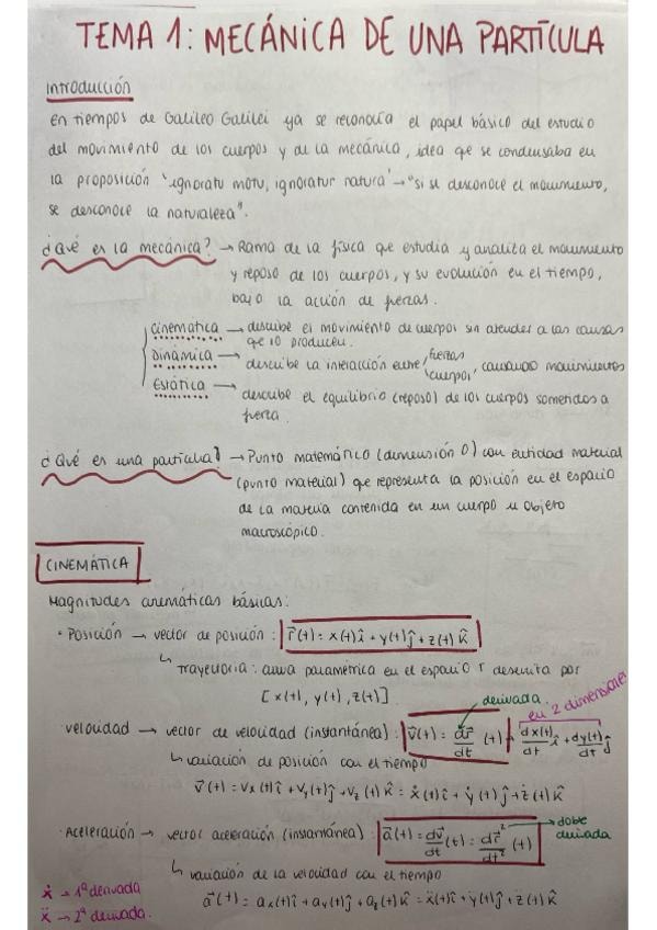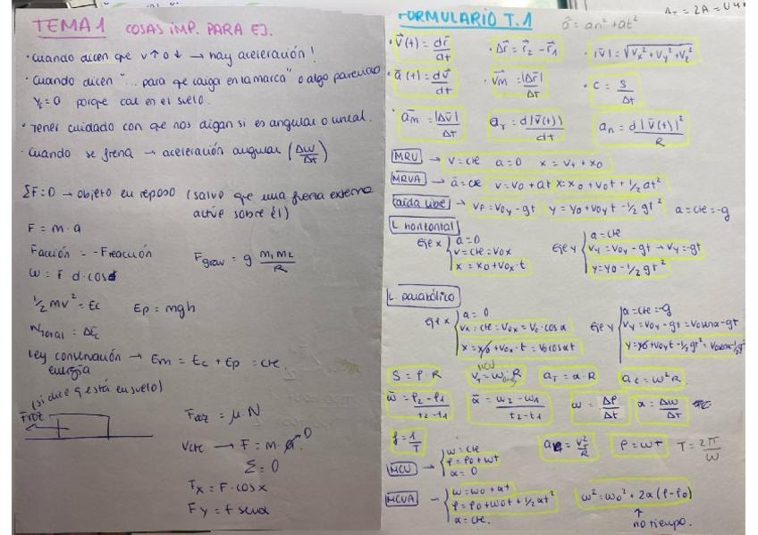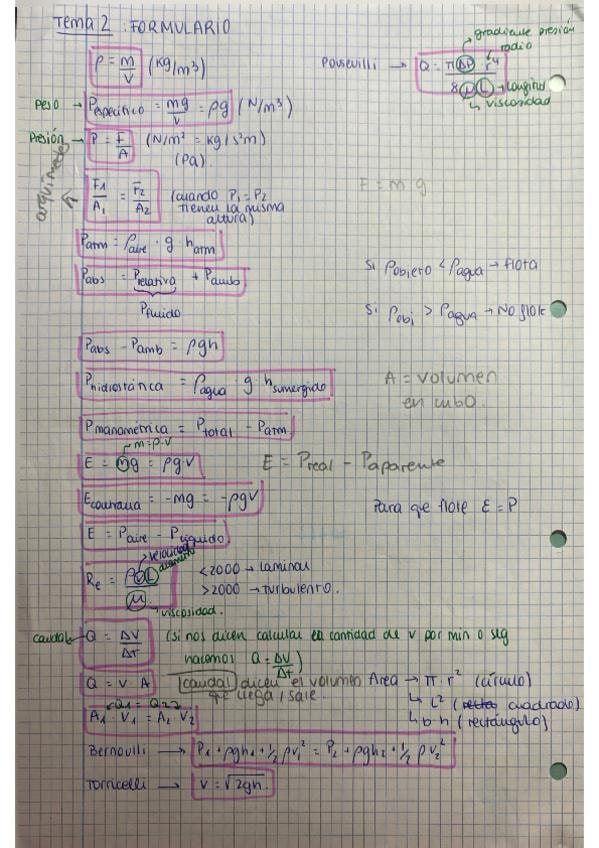 Resumen de todas las fórmulas y teoría temas 1 (mecánica de una oartícula) y 2 (mecánica de fluidos)