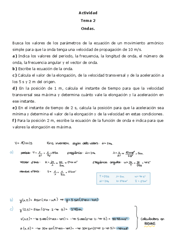 Els exercicis del tema 2 (ones) explicats