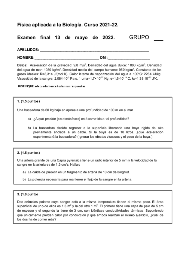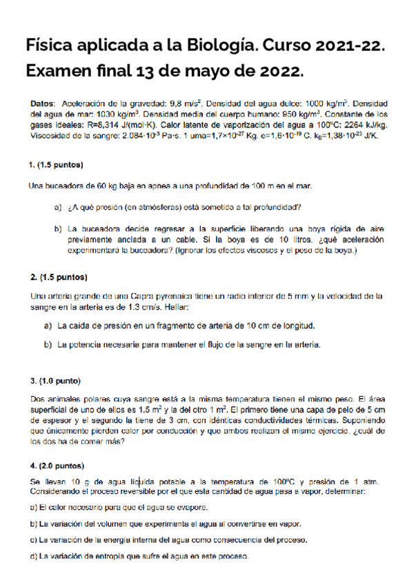 He publicado nuevos examenes de 1º Física Aplicada a la Biología: Examen-Fisica-aplicada-a-la-biologia-curso-2021-2022.pdf