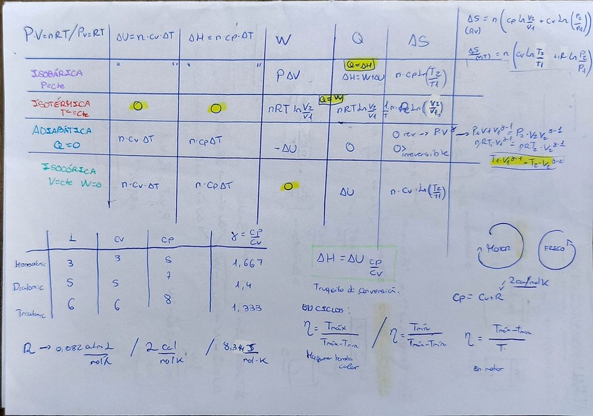 Apuntes y formulario de termodinámica para 10.