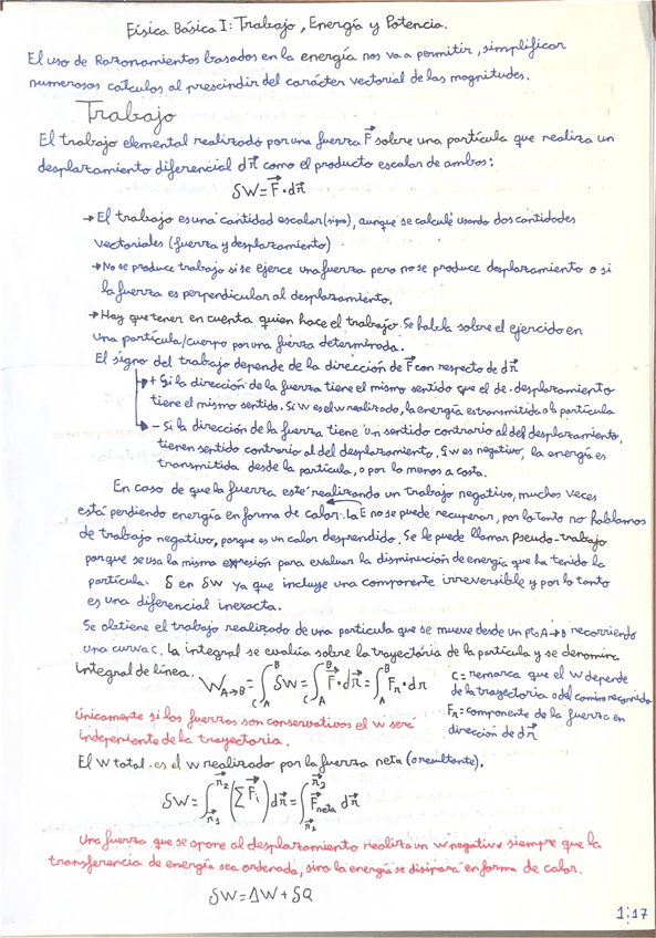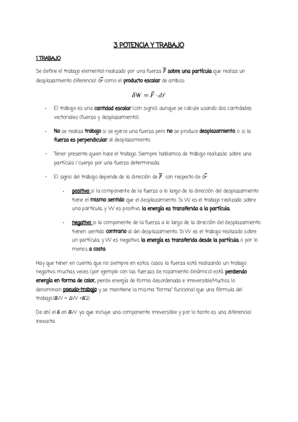 Resumen de la teoría del Tema 3 -Trabajo,Energía y Potencia