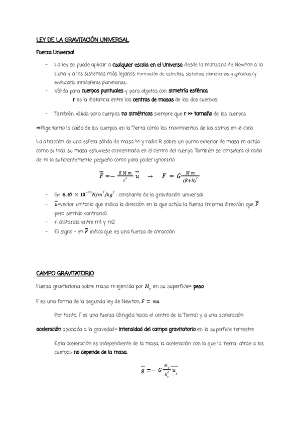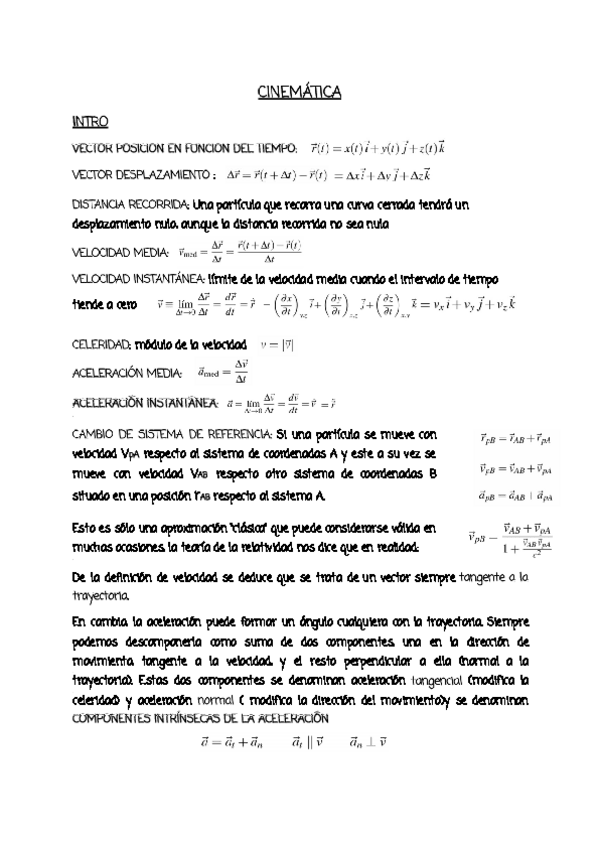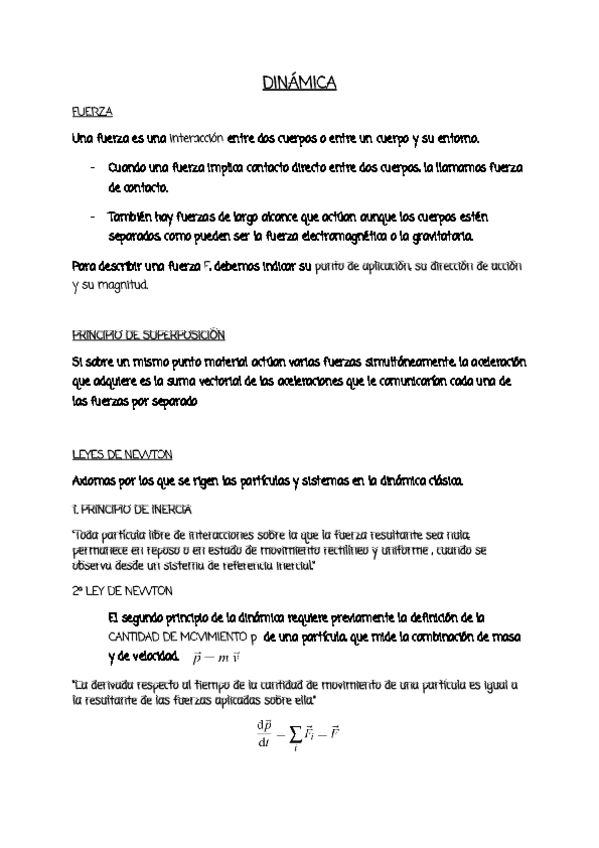 Resumen de la teoría del Tema 2 -Dinámica de una partícula