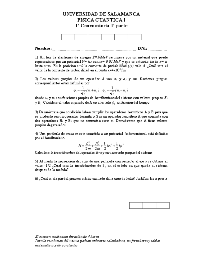 He publicado nuevos examenes de 3º Física Cuántica I: examen primera convocatoria fc.pdf