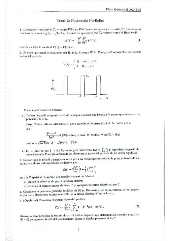 Física Cuántica 2. Tema 3 Potenciales Periódicos