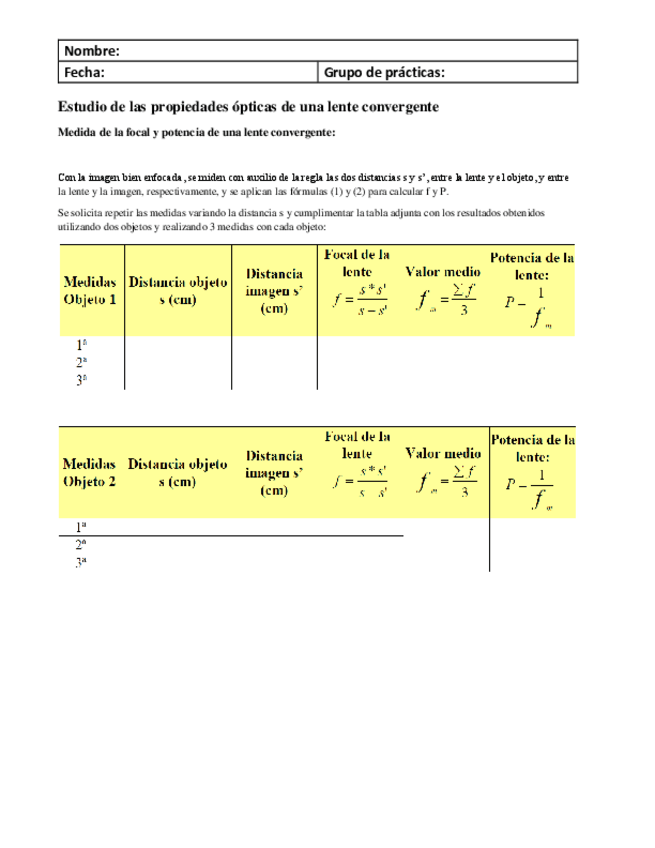 práctica óptica