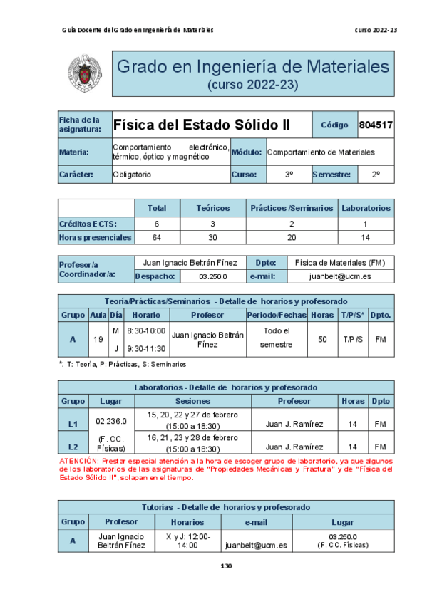 He publicado nuevos apuntes de 3º Física del Estado Sólido II: Temas y entregables