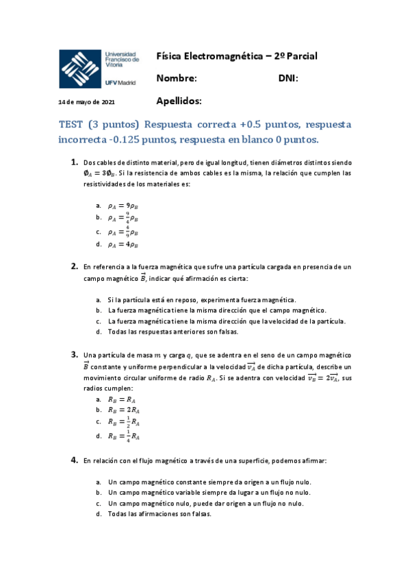 He publicado nuevos examenes de 1º Física Electromagnética: Test1oParcial.docx