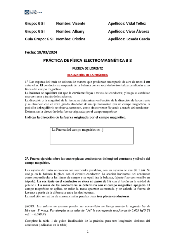 He publicado nuevos practicas de 1º Física Electromagnética: 8-Practica-LORENTZDATOSR.pdf