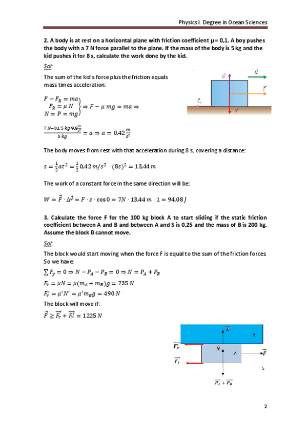 Soluciones y enunciados del boletín 3 de física 1. Son del tema 3: Leyes de Newton.