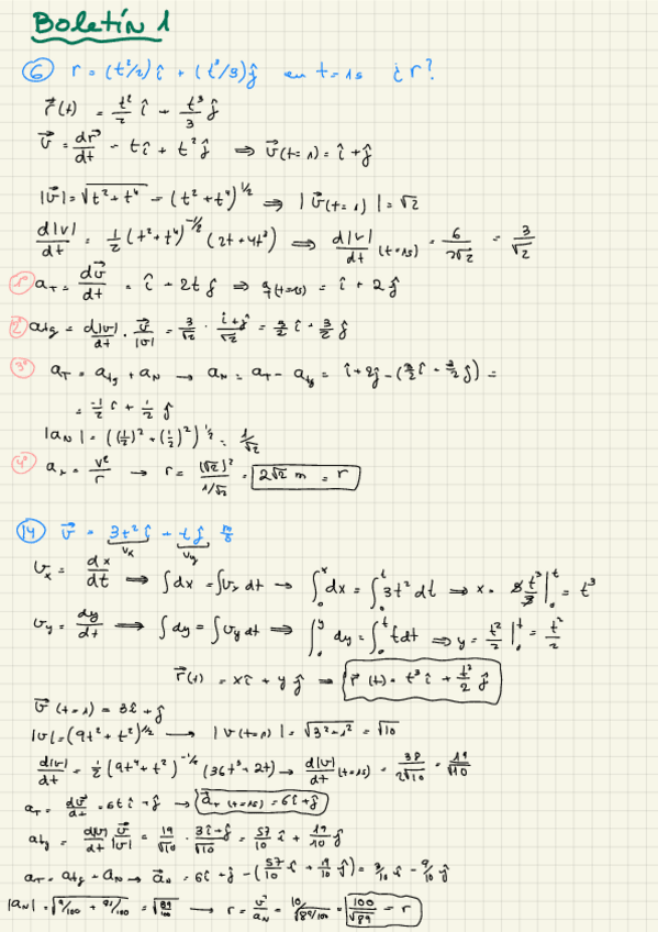 Boletín 2 de Física 1, son del tema 2 cinemática del punto. Incluye la resolución del boletín con sus enunciados.