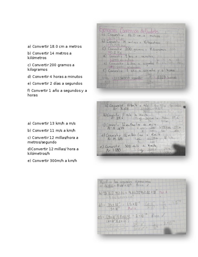 Ejercicios de Conversión de unidades y propagación del error