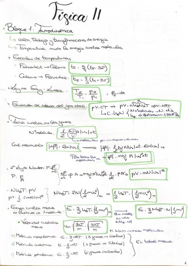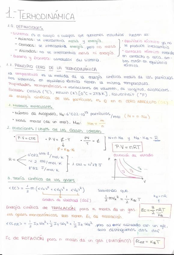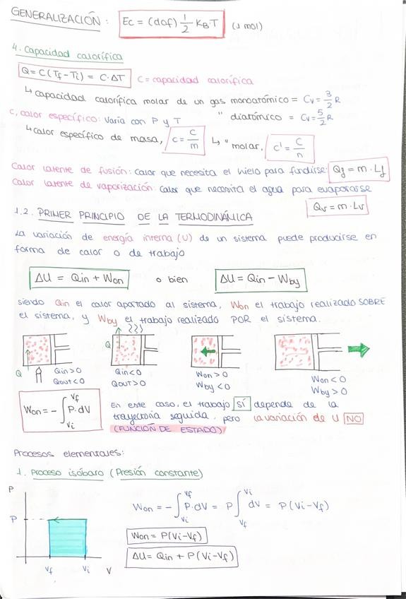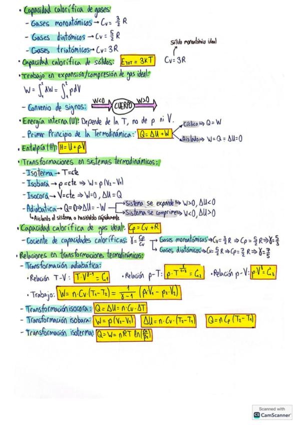Resumen de los temas 1 y 2 - Termodinámica, con las fórmulas principales destacadas y los conceptos importantes explicados