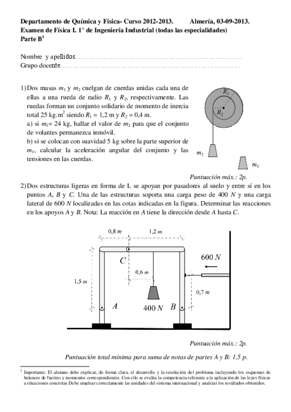 He publicado nuevos examenes de 1º Física I: EXAMENES ANTERIORES