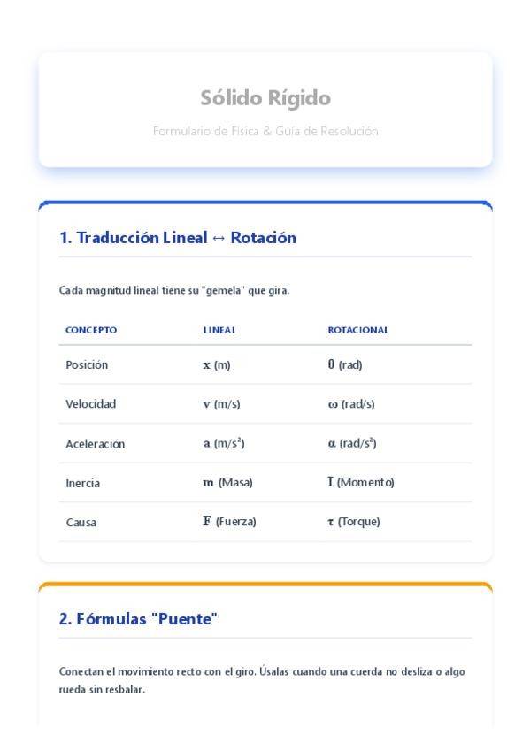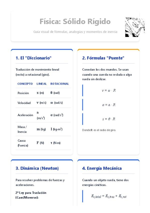 ¿Te da pereza pasar horas resumiendo los apuntes? No te preocupes, aquí los tienes para reventar el examen de enero. ¿Qué vas a encontrar? ✅ Fórmulas clave resaltadas. ✅ Esquemas a mano para visualizar el Sólido Rígido. ✅ Lenguaje claro, de estudiant
