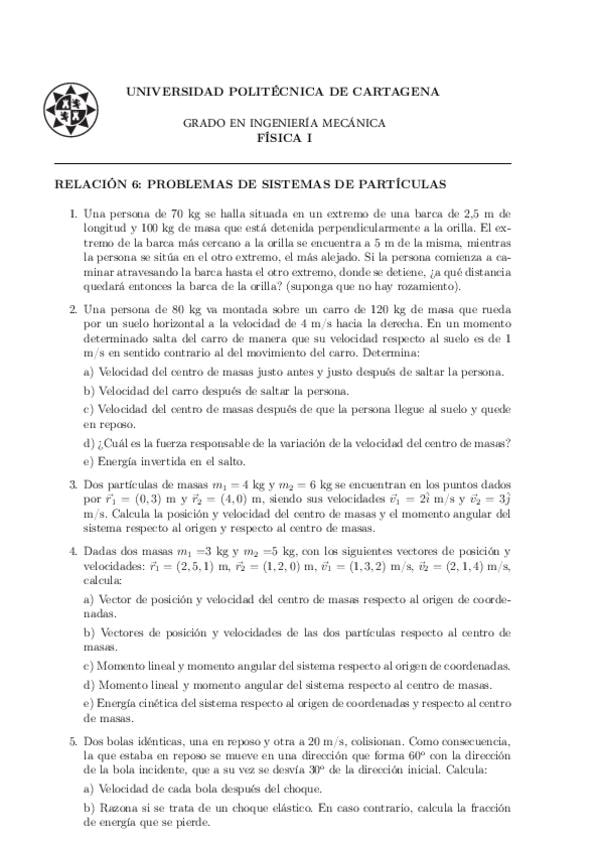 He publicado nuevos ejercicios de 1º Física I: Sistema-de-particulas.pdf