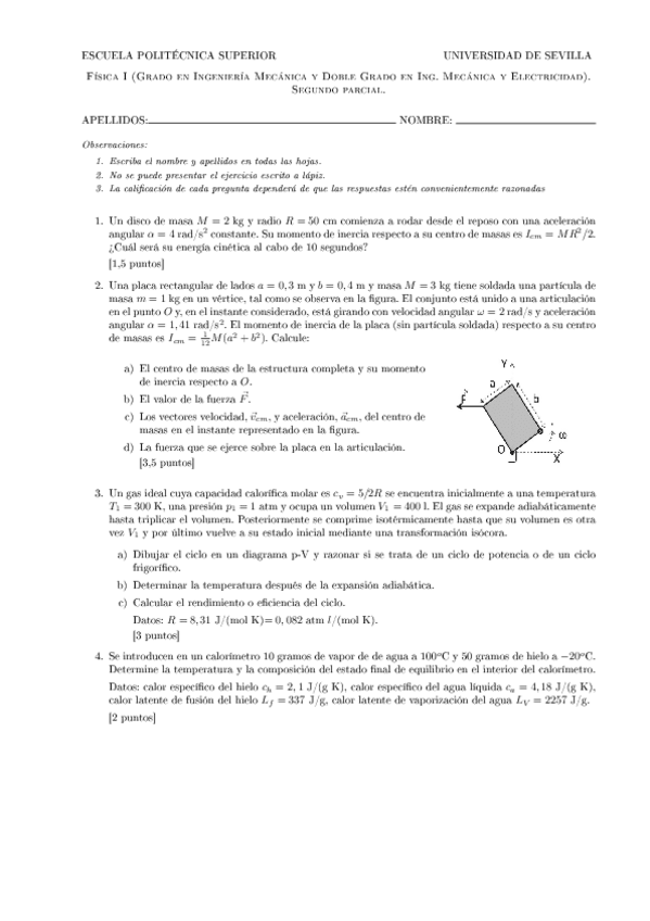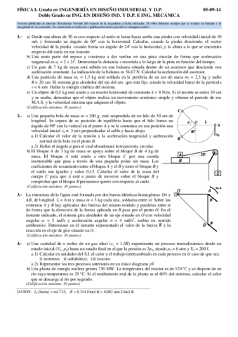 He publicado nuevos examenes de 1º Física I: Segundos Parciales