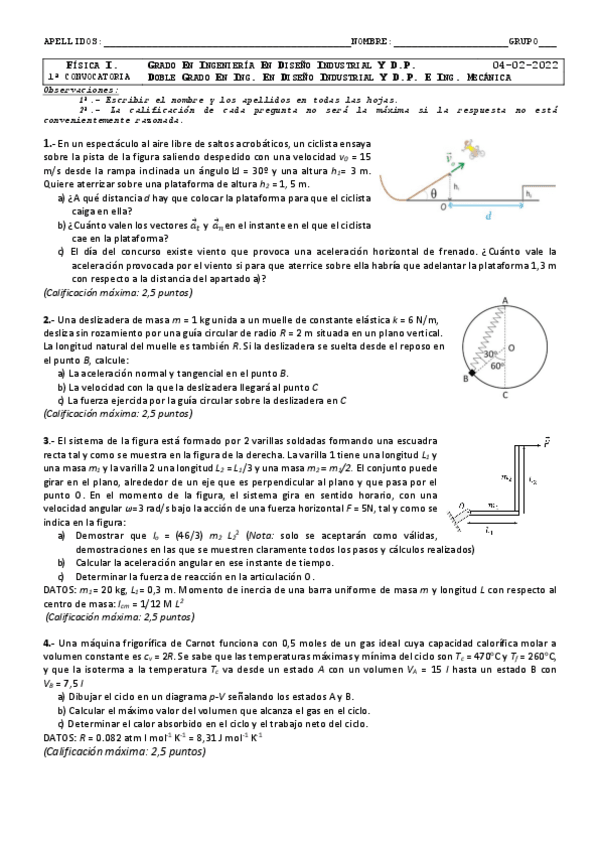 EXÁMENES FÍSICA I 2022
