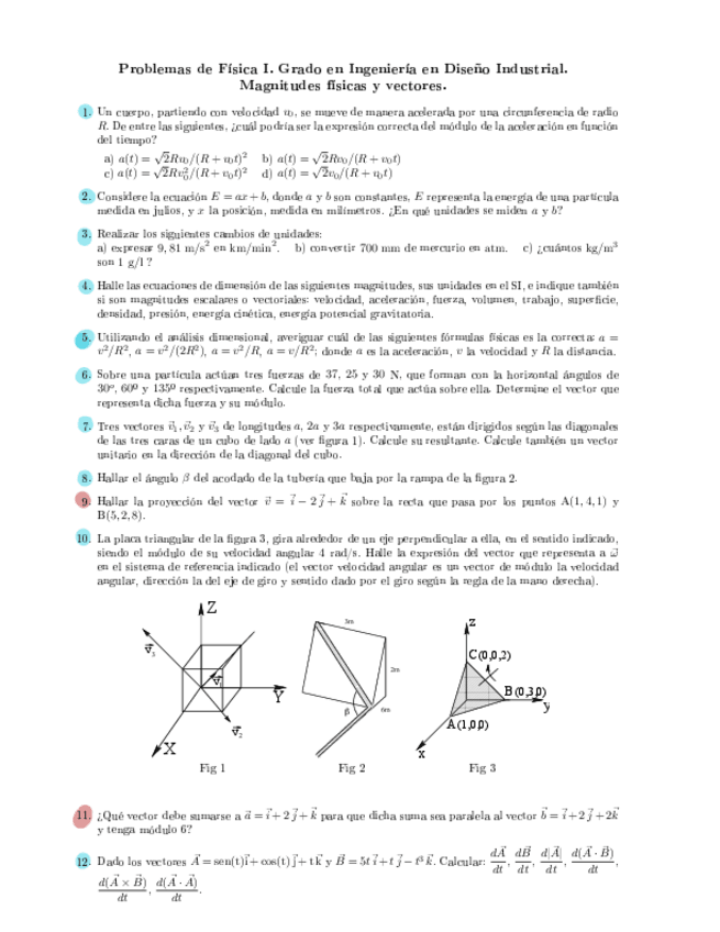 He publicado nuevos ejercicios de 1º Física I: Ejercicios fisica I.pdf