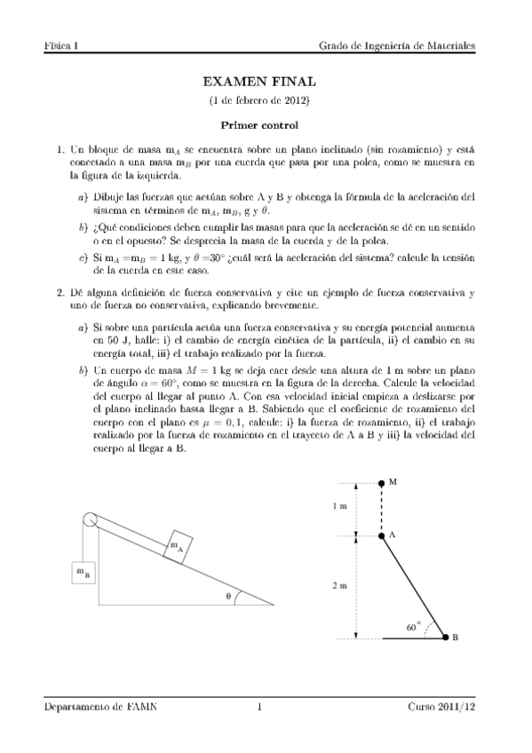 He publicado nuevos examenes de 1º Física I: examen-final-febrero-2014-resuelto.pdf