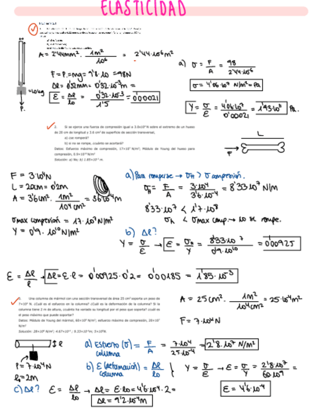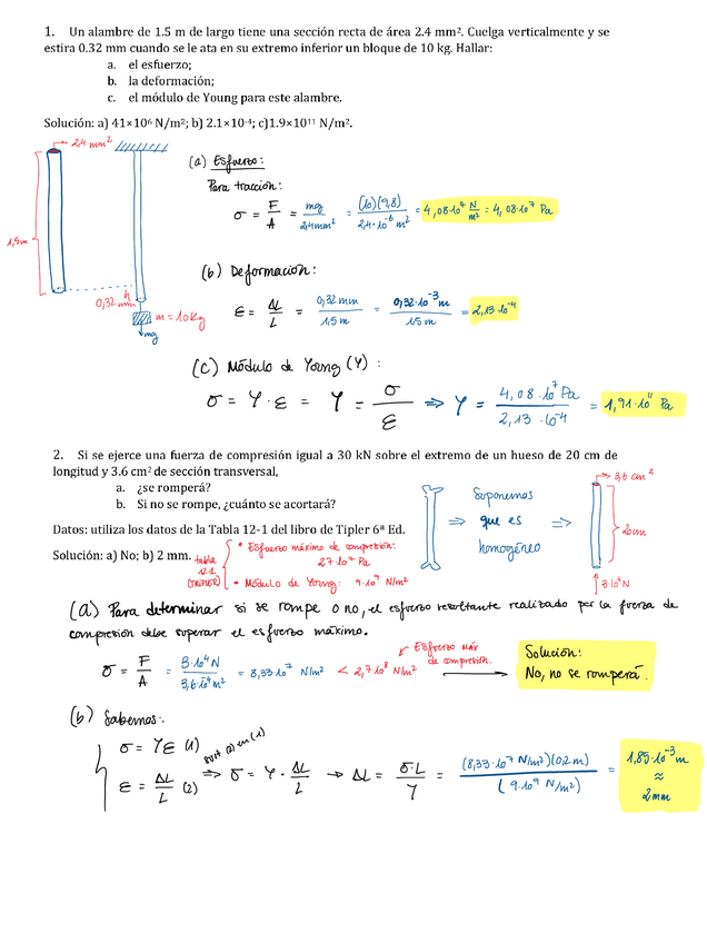 Ejercicios resueltos tema 2 Elasticidad, Física 1.