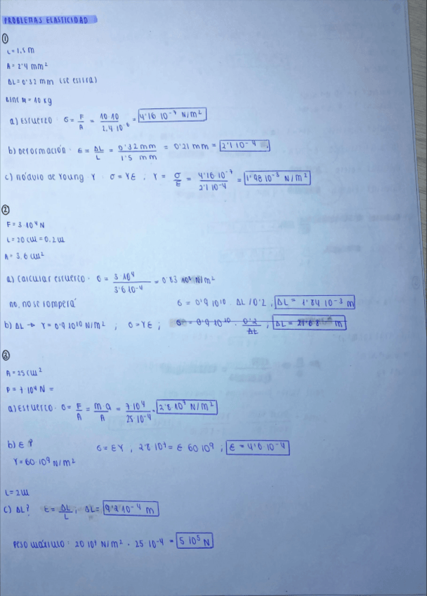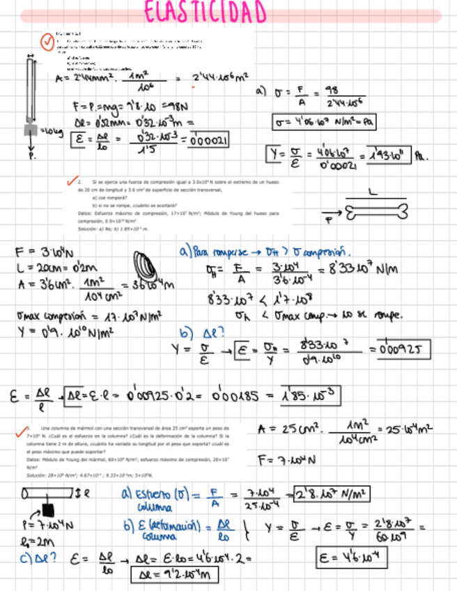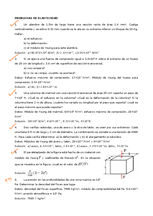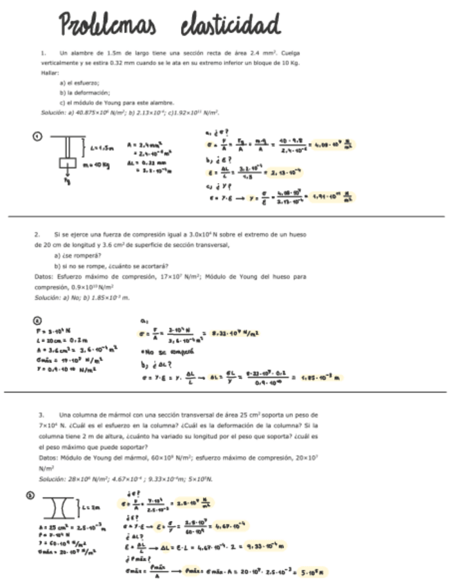 Ejercicios resueltos tema 2 Elasticidad, Física 1.