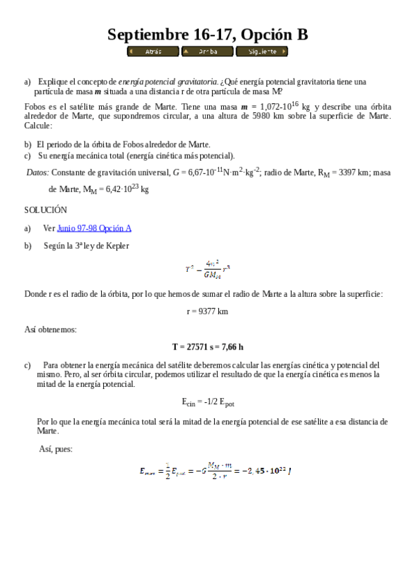 He publicado nuevos examenes de 1º Física I: Preguntas exámenes antiguos - Gravitación