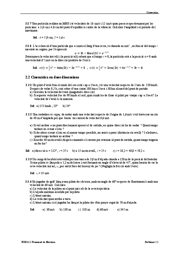 He publicado nuevos ejercicios de 1º Física I: Fonaments de Mecànica: Tema2CINEMATICA.pdf