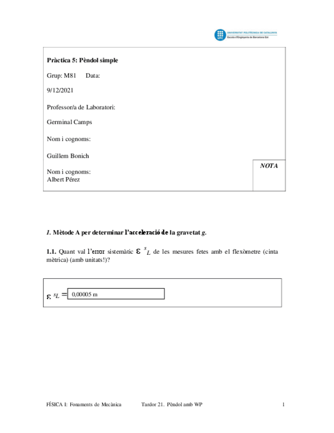 He publicado nuevos practicas de 1º Física I: Fundamentos de Mecánica: 1a-practica-fisica-laboratori-politges.docx.pdf