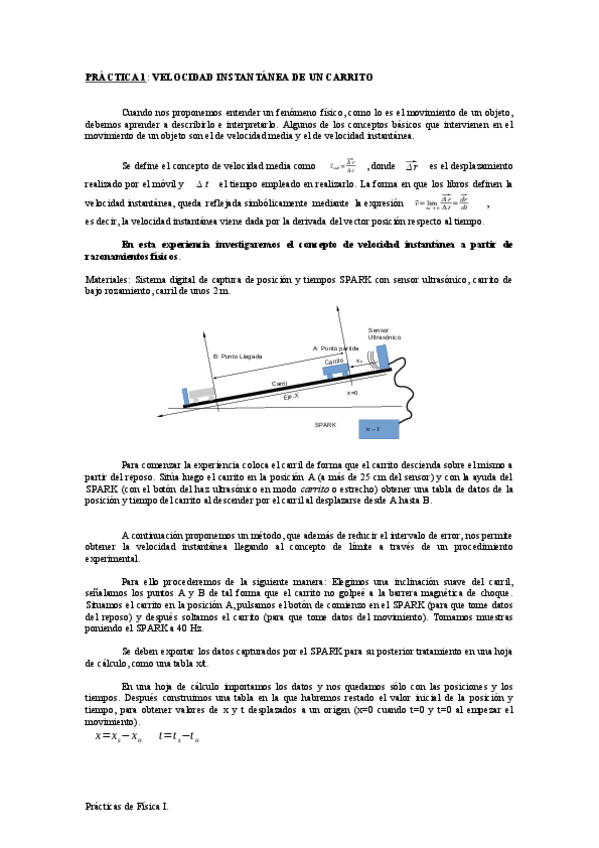 Práctica Física I Velocidad Instantánea-Carrito