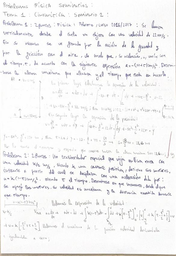 He publicado nuevos ejercicios de 1º Física I: Tema-2 CINEMÁTICA-Problemas-Ejercicios + SEMINARIOS.pdf