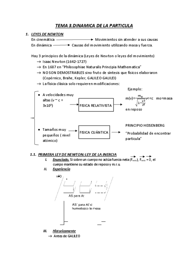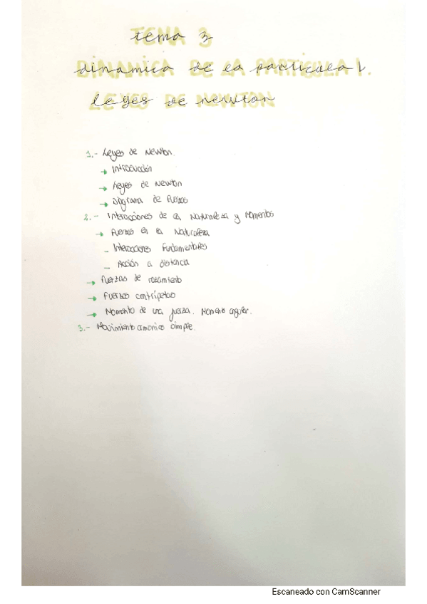 Apuntes completos hechos a mano del tema 3 : Dinámica de la Partícula. Leyes de Newton, Trabajo y Energía.