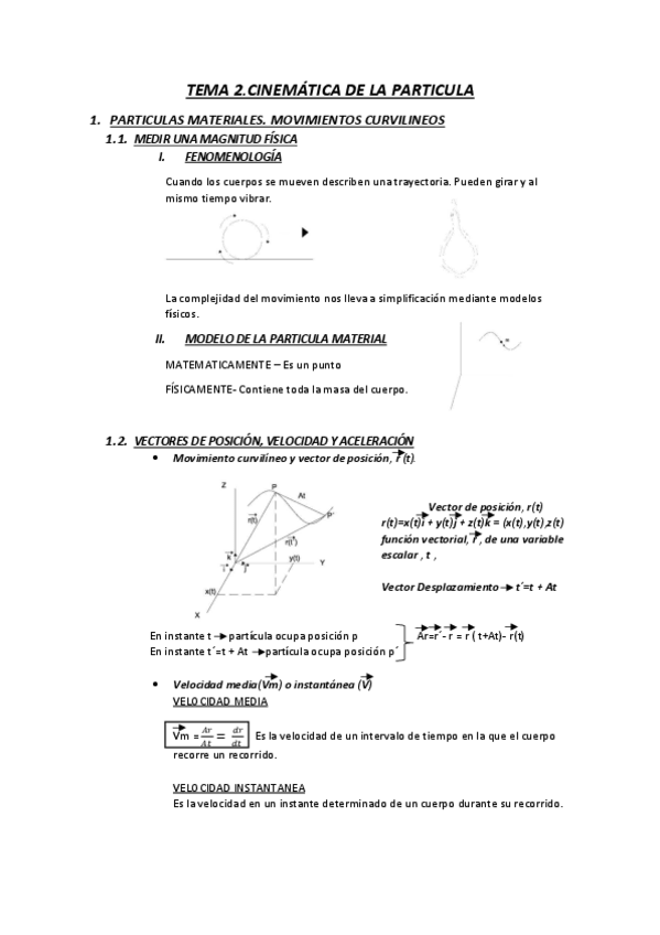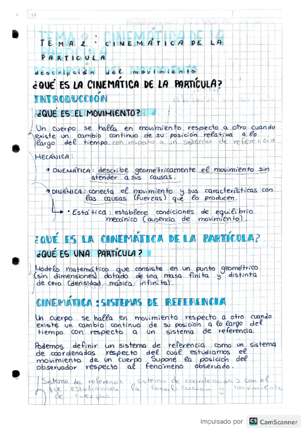 Apuntes completos hechos a mano del tema 2: Cinemática de la Partícula