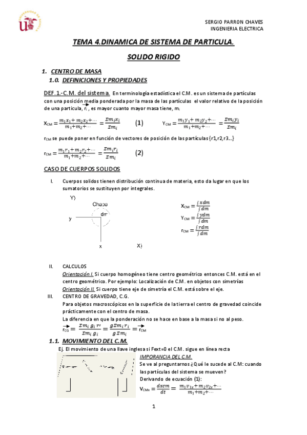 Apuntes completos hechos a mano del tema 4 : Sistema de Partículas y Dinámica del SR