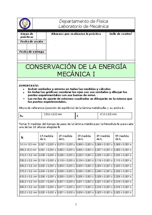 He publicado nuevos practicas de 1º Física I: Laboratorio