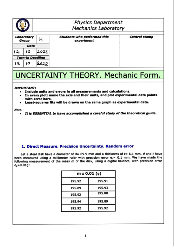 He publicado nuevos practicas de 1º Física I: UNCERTAINTY THEORY LAB.pdf