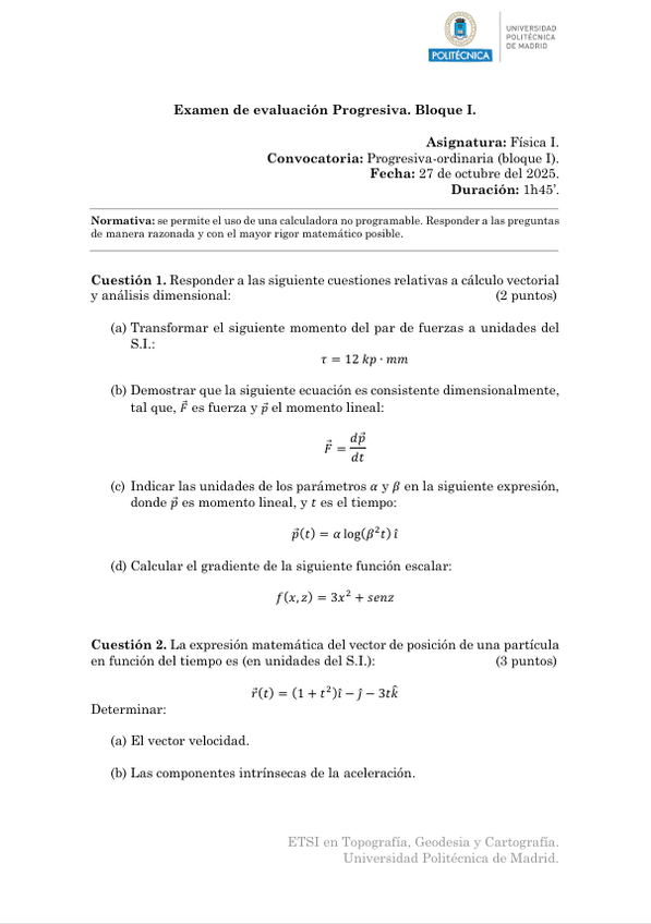 He publicado nuevos examenes de 1º Física I: Fl-Parcial1-2024-25.pdf