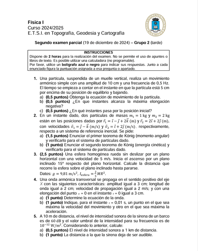 He publicado nuevos examenes de 1º Física I: Soluciones-Parcial2-Tarde-202425.pdf