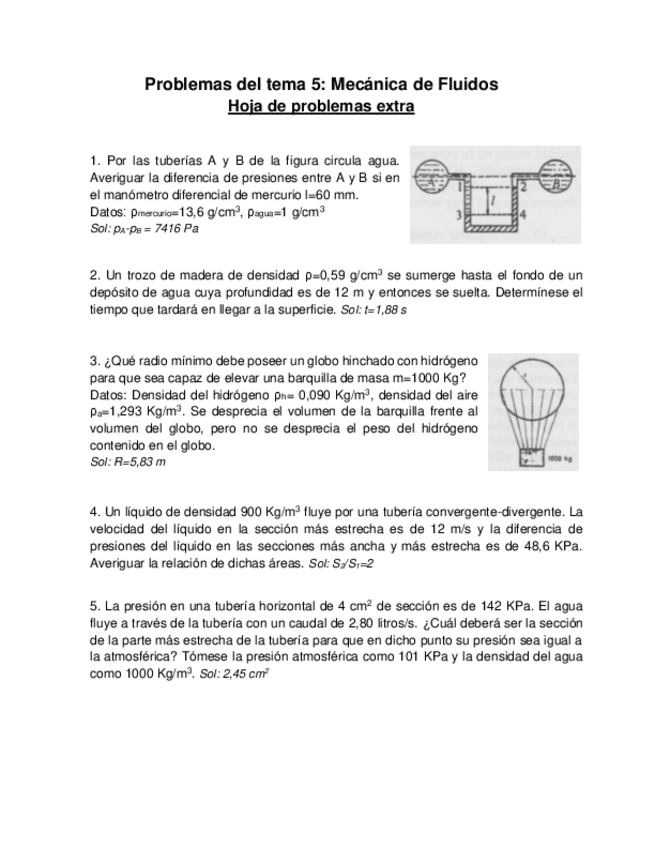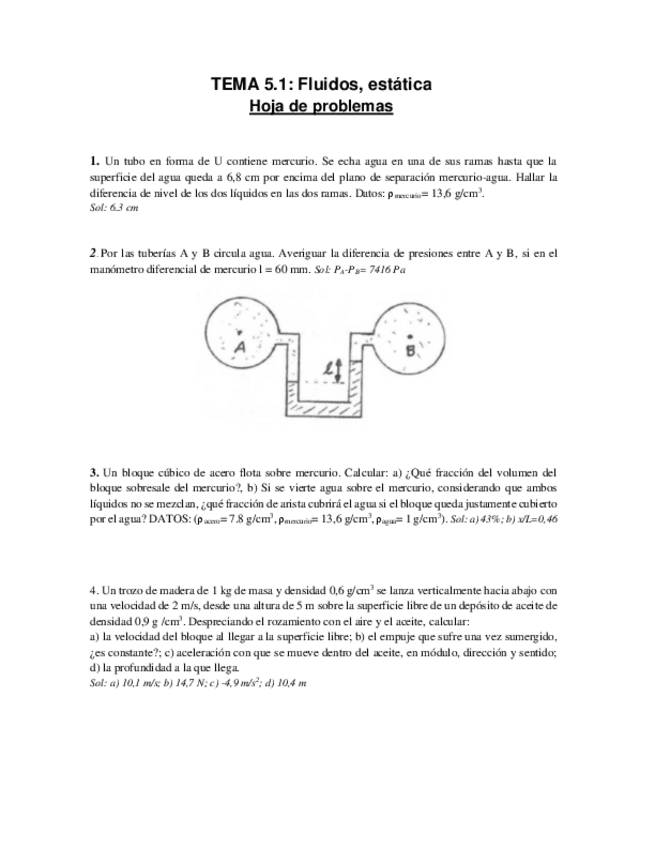 He publicado nuevos ejercicios de 1º Física I: FLUIDOS EJERCICIOS SOLUCION