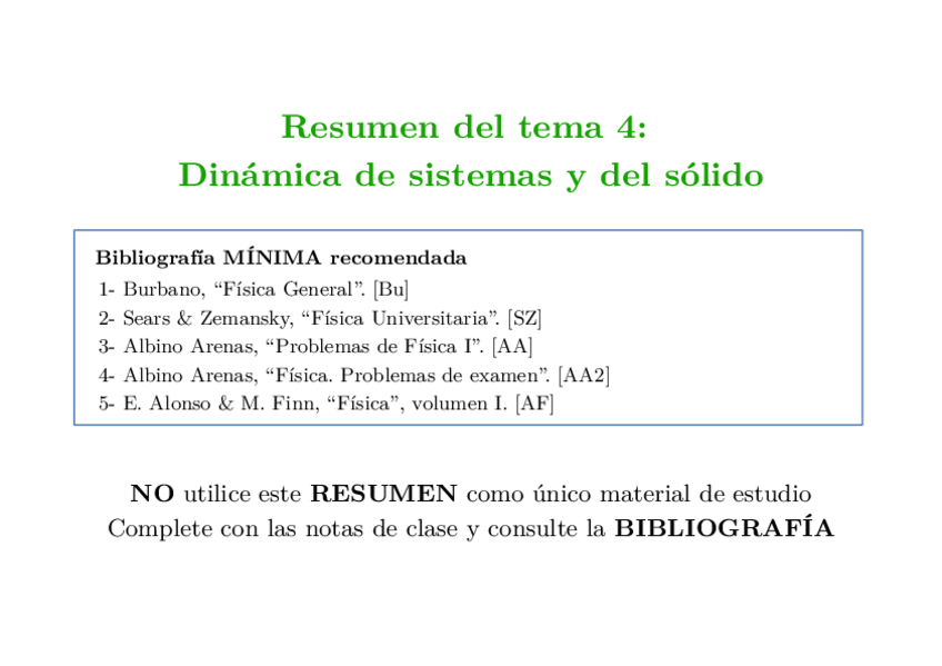 He publicado nuevos apuntes de 1º Física I: Diapositivas-Resumen-4-Dinamica-de-sistemas-y-del-solido.pdf