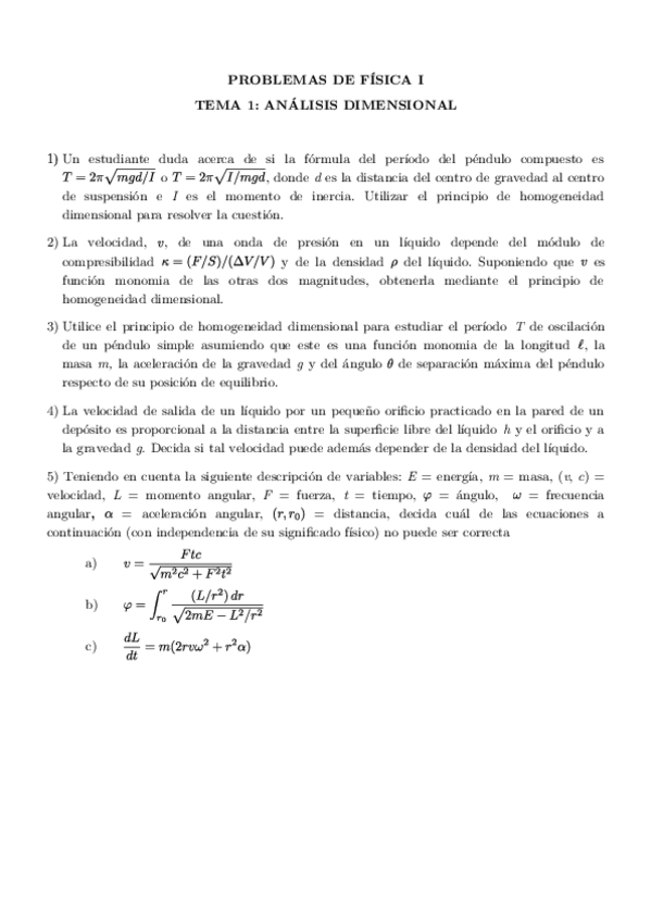 ENUNCIADOS PROBLEMAS FISICA I