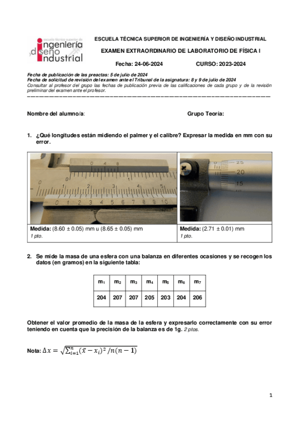 He publicado nuevos examenes de 1º Física I: Laboratorio-de-Fisica-I-2023-2024-extraordinario-con-soluciones.pdf